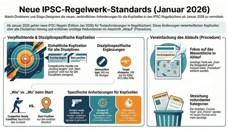 Fehlerfreie Matchunterlagen sind den Sanktionierern natürlich am liebsten. Um aufwendige Korrekturen der Stages zu vermeiden, sollten Matchveranstalter darauf achten, dass die Zielaufbauten genehmigungsfähig sind. Erlaubte und nicht erlaubte Aufbauten finden sich im Target Array Handbook.